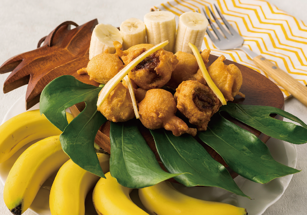 インドネシア語で「ピサン(バナナ)」を「ゴレン(揚げる)」した定番スィーツです。東南アジアの屋台などで広く親しまれている人気メニュー。外はサクッ、中はフワッとした衣の中からトロリとした甘いバナナが!シンプルですがクセになる一品です。アイスクリームやシナモンパウダーとの相性もバッチリです。