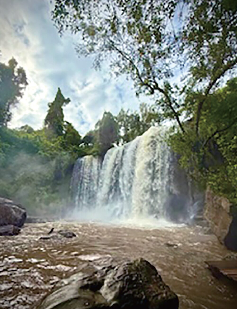 翌日はプレアヴィヒア寺院に行く予定でしたが、タイとの新たな軍事衝突が発生し、危険とのことで取り止めに。代わりにアンコール王朝発祥の地とされる聖なる山「クーレン山」へ向かいます。崖の展望台からの壮観な景色には感動しましたが、手摺とか全く無いのがカンボジア風で身が竦みました。
