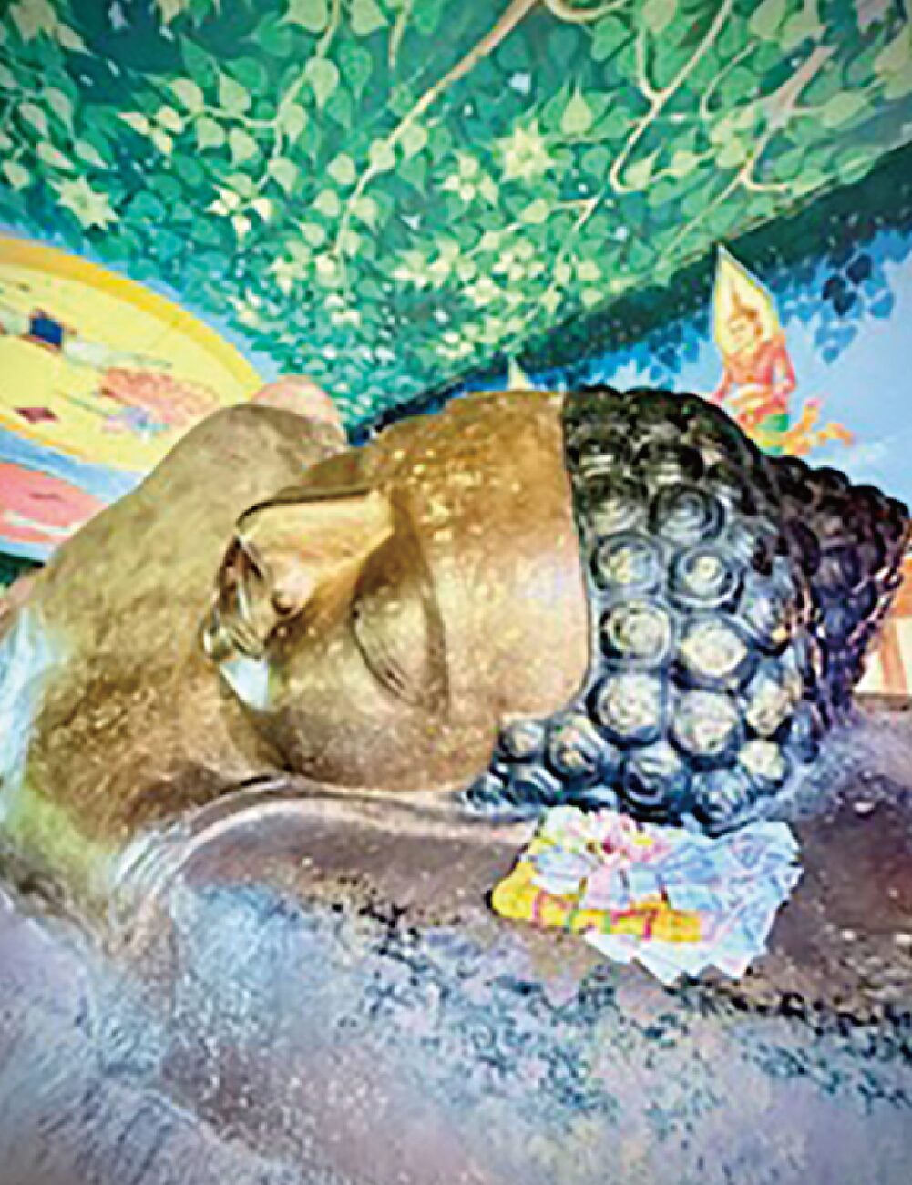 ▲聖なる山の頂上、巨大岩で作られた涅槃像