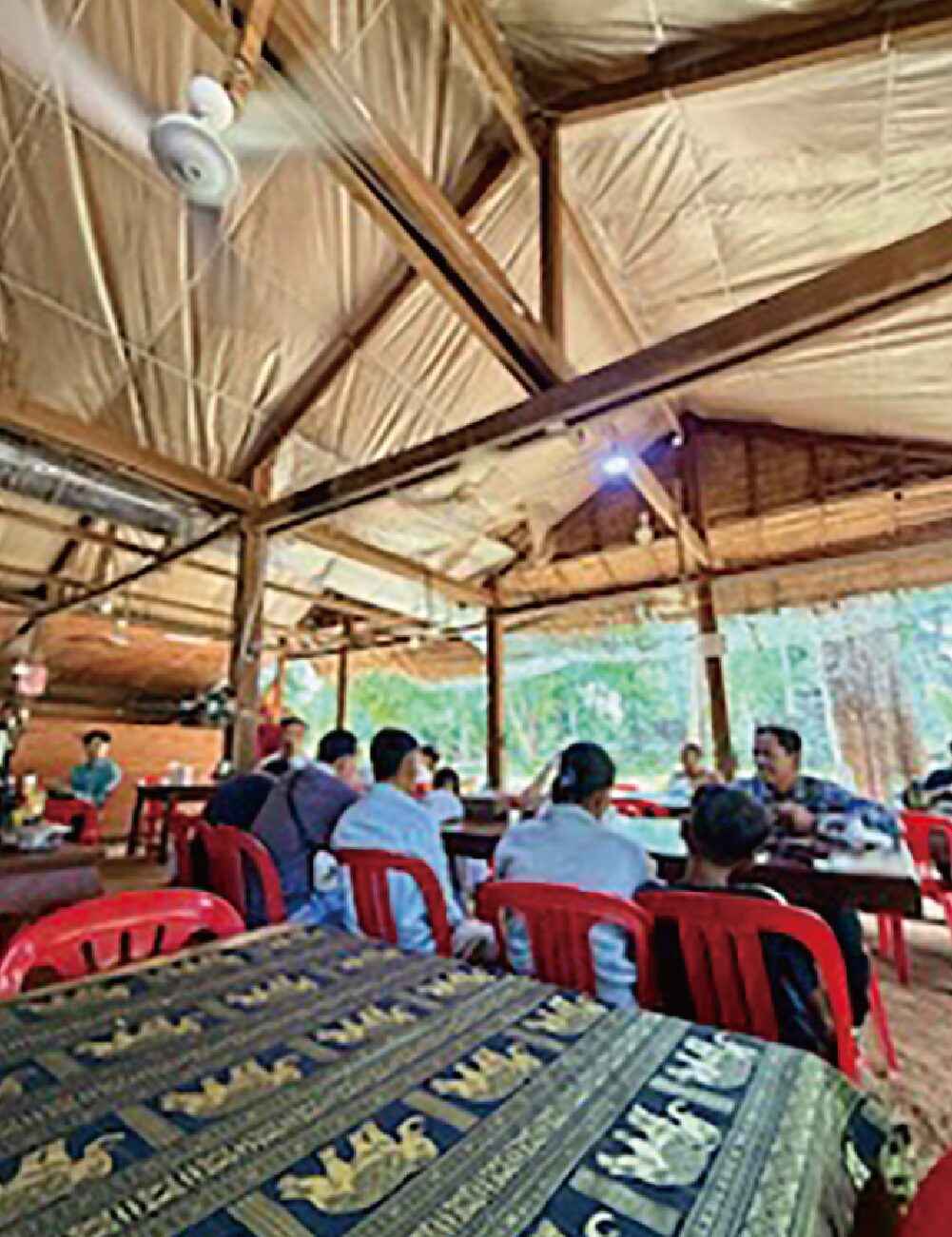 そんなアンコールワットで、日の出を楽しもうと早朝ホテルを出発。その後もバイヨン寺院やアンコールトムなどの遺跡を巡り、ようやくランチタイム。楽しみにしていた、カンボジアの名物料理アモックをいただきます。