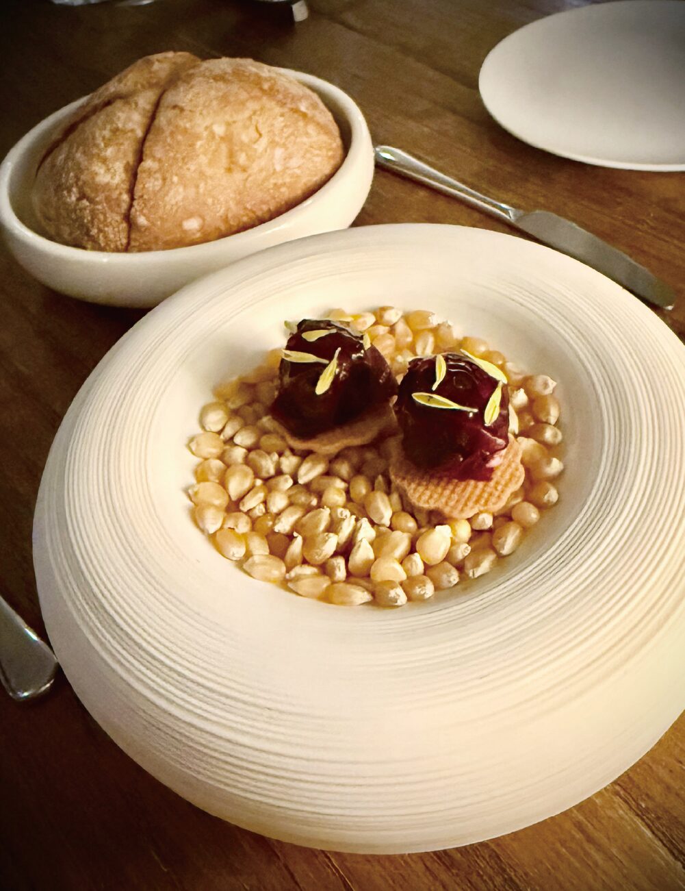 夜は街の中心部から少し離れた隠れ家レストラン、ミシュランセレクティドのモダンフレンチ「啢啢餐桌」へ。三階建ての一軒家で、一階のキッチンを抜けて二階席に上がると、ナチュラルテイストのモダンな内装が心地よい空間が現れます。満席のテーブルは100%ヤングアダルトのカップルで、還暦の爺さんはちょっと浮いているかも(笑)。