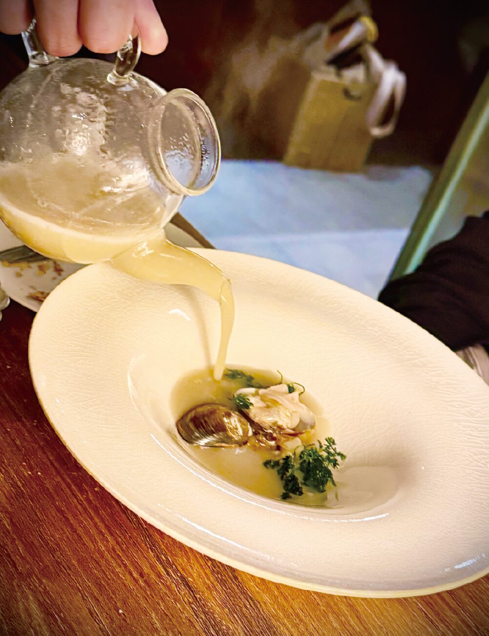 ▲牡蠣のスープと腸詰
