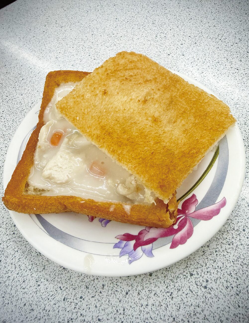 さらにもう一軒、ぜひ訪れたかった「赤嵌棺材板」へ。揚げた食パンをくり抜いた器に、とろりとしたクリームシチューを詰めた台南発祥のB級グルメで、四角いパンが棺桶に似ていることから「棺材板(棺桶パン)」と名付けられたそうです。約80年前から愛され続ける元祖の味は、どこか懐かしい洋食の風情がありました。