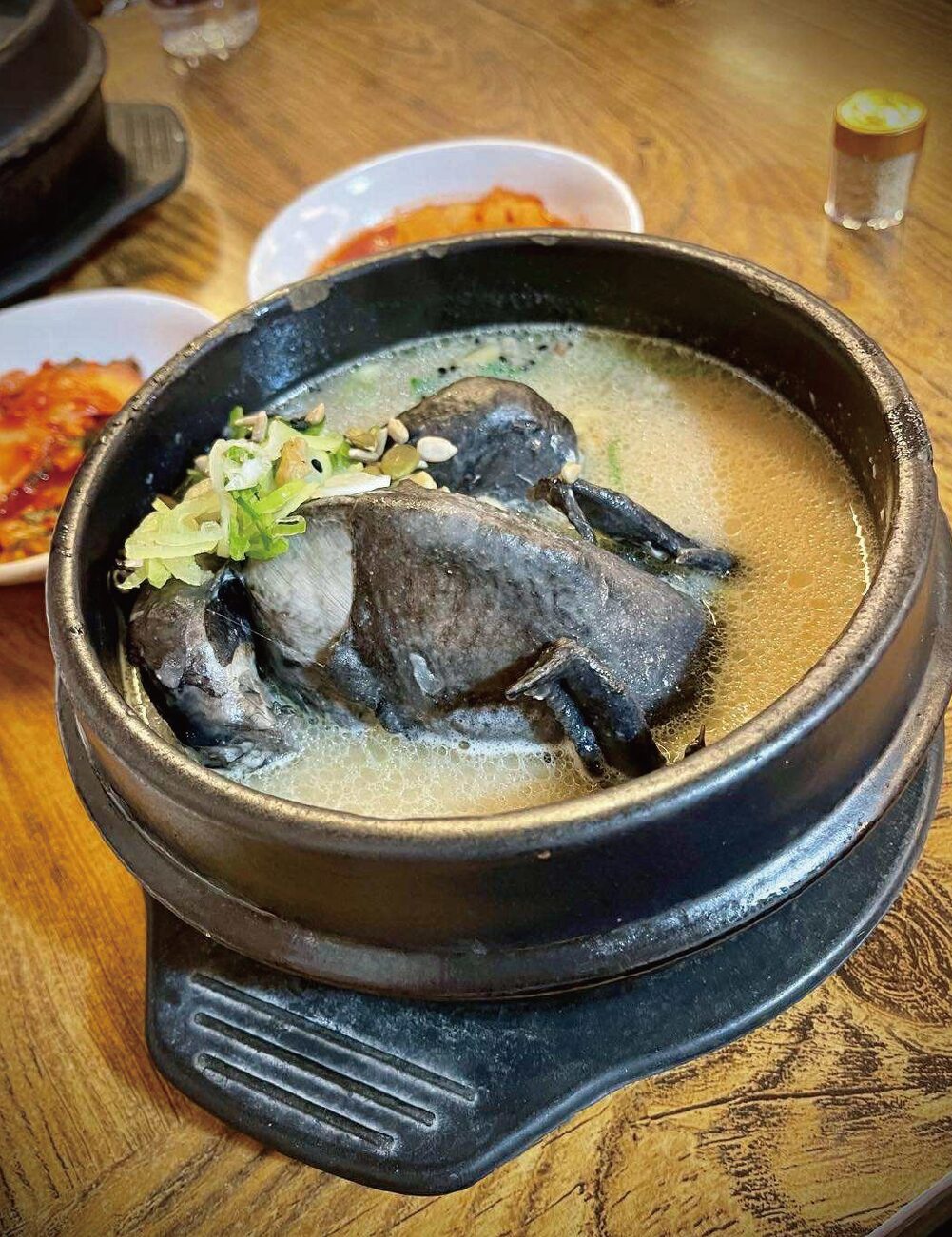 ソウルでの二日目はゆっくり起きてブランチへ。韓国に来たら、やはり参鶏湯は欠かせないですね。そこで言わずとしれた景福宮近くの大人気店「土俗村(トソクチョン)」に。韓国の伝統的な家屋「韓屋(ハノ)」を活かした雰囲気抜群の店内で頂くお料理がまた最高。折角なので、かつては宮廷でのみ食べられていたオゴルゲ(烏骨鶏)を使ったオゴルゲタンを試してみました。見た目は真っ黒で少しグロテスクですが、身が引き締まっていて味がより濃厚、薬効は参鶏湯よりも高いそうです。食べていると体がポカポカと温まり汗が出てきます。これは元気になるやつですね!