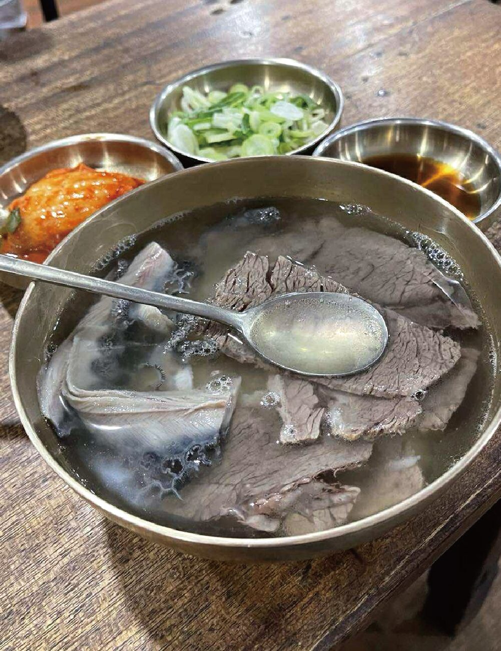 江原道産の韓牛メスの内臓と牛の胸肉を、約6時間ゆっくり煮込んで完成させるらしく、スッキリと透き通ったスープがとても美味しい。胃にも優しい朝ごはんで、幸せな気分を満喫しました。このワンメニューで85年続くなんて凄すぎ、同業者として敬意を表します。